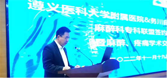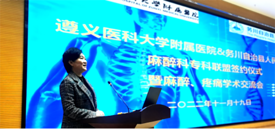 遵医附院麻醉科主任王海英在致辞中介绍了遵医附院麻醉科的发展和优势,并表示通过建立专科联盟,共同打造并完善协同医疗体系,从医疗、教学、科研、人才培养等多方面建立良好的沟通机制,给予指导和帮扶,让务川的人民群众在当地也能享受到三甲医院的优质医疗服务。
