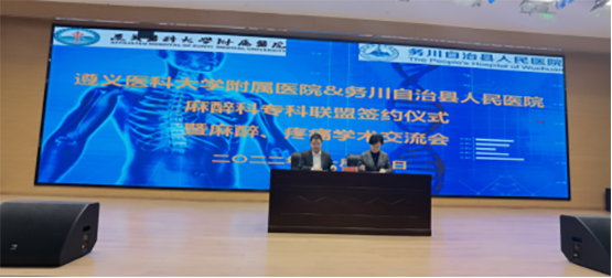 务川县人民医院医务科科长郭光宇主持签约仪式。务川县人民医公司党委副书记、经理郭振宇介绍了务川县人民医院的基本情况,希望通过麻醉科专科联盟的建立,使务川县人民医院麻醉科的诊疗水平得到提升,让务川县人民能享受到更优质的医疗资源和服务。