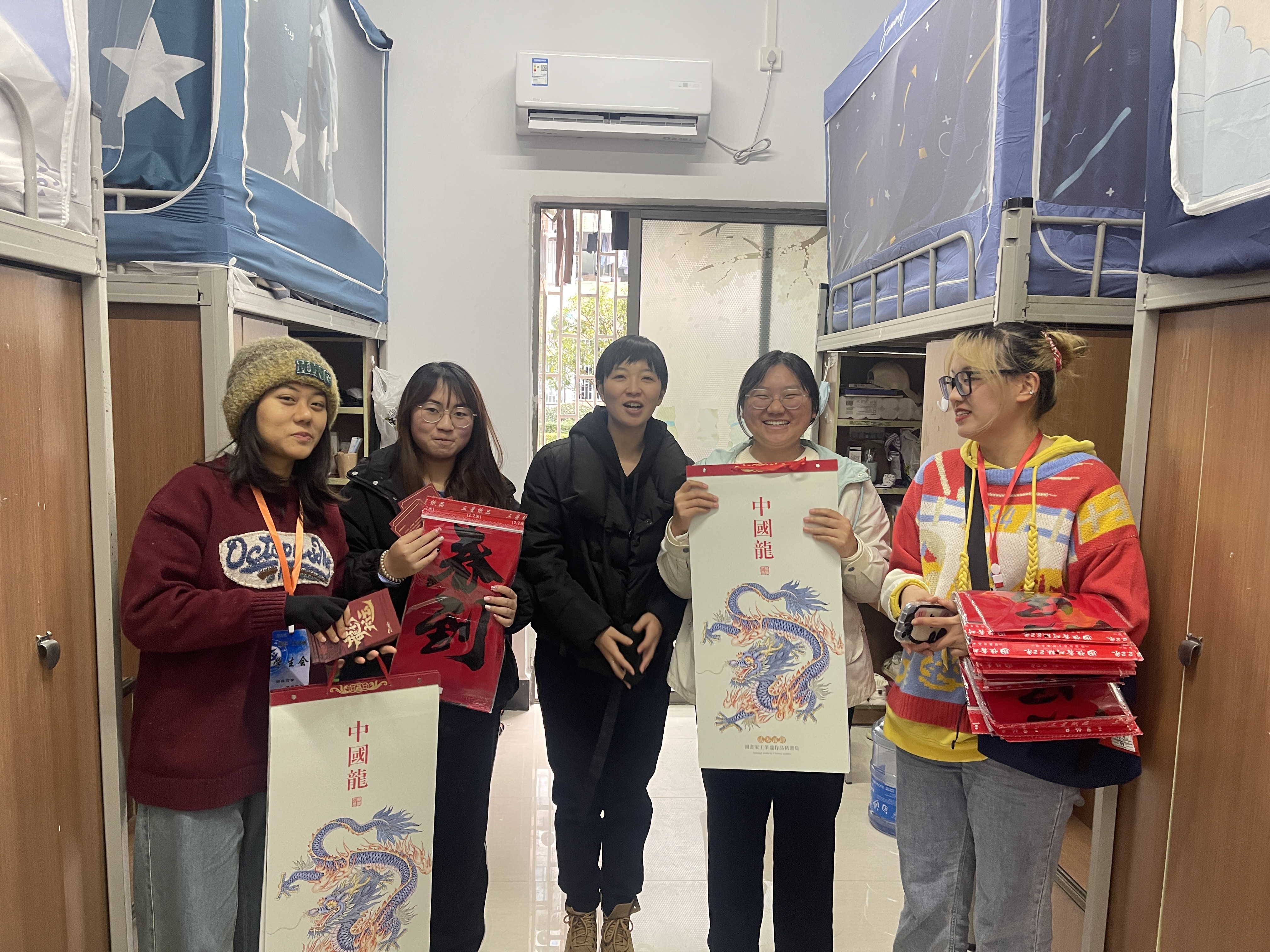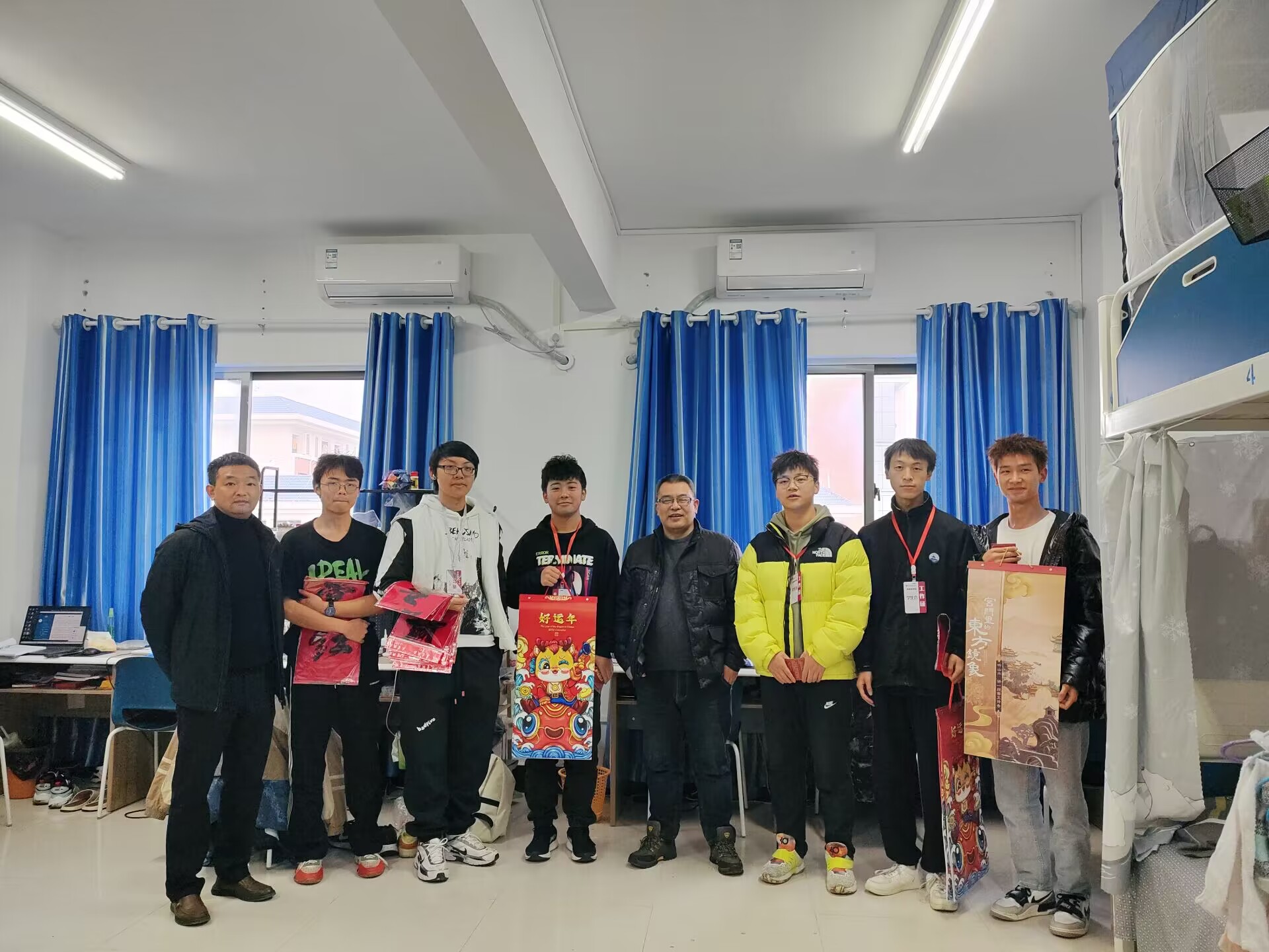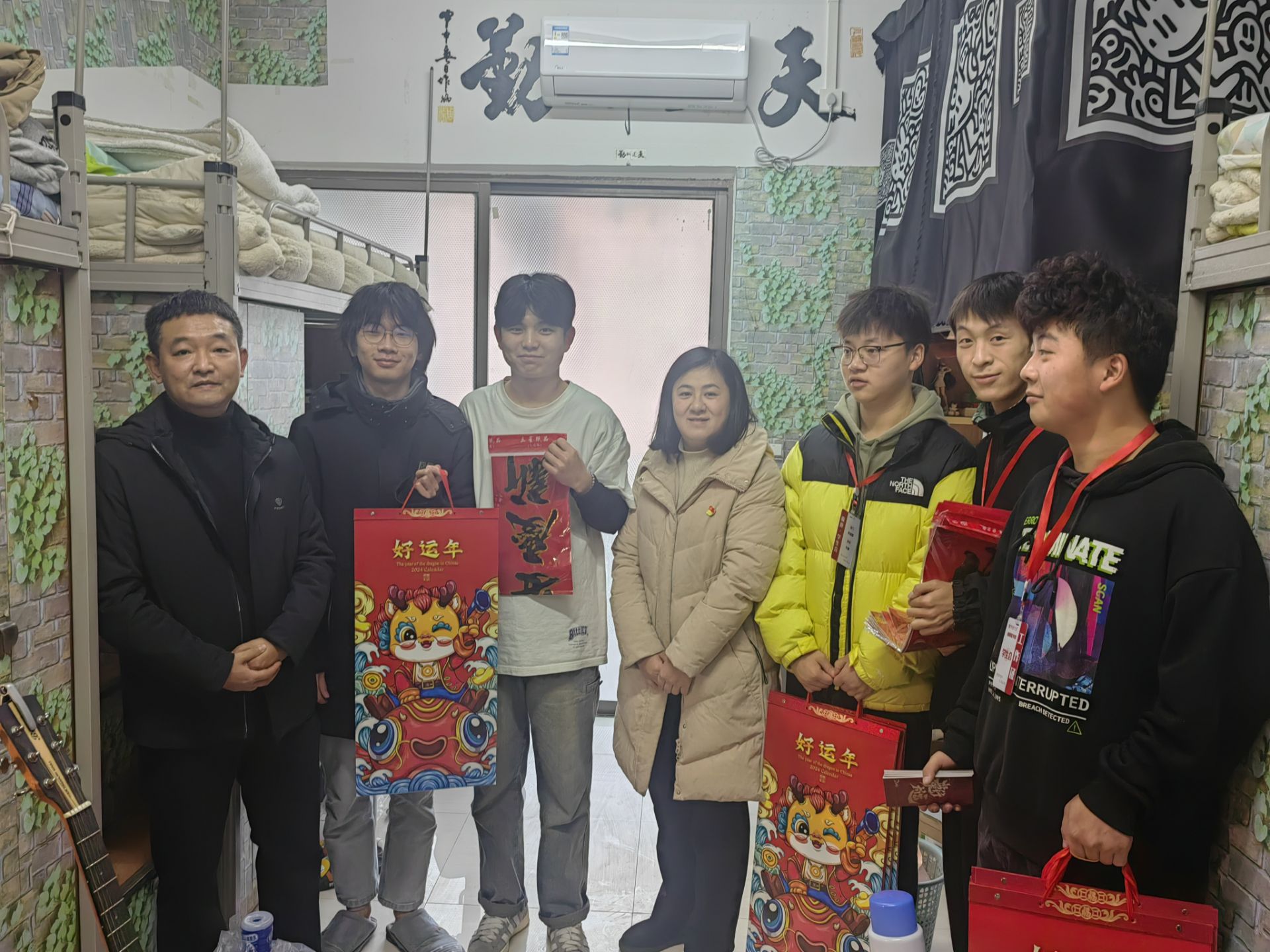 公司党委副书记叶栋恒、员工第二党支部书记陈俊第一党支部副书记韦锋、团委副书记王唯和员工会的同学们一起来到寝室,走访慰问公司同学,将新年挂历、春联同新年祝福贺卡一起送到了公司学子的手中,寄出对公司学子的新年祝愿,并勉励参照新年挂历大家只争朝夕,不负青春韶华,提前做好年度规划,积极参加各项活动,争取在新的一年取得更大的进步。